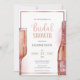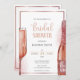 Chá de panela com detalhes rosa dourados que correspondem a "pétalas e prosecco" ou "tema de brunch e borbulhar". Design moderno, com vinho e garrafa de champanhe. Os convites podem ser personalizados. Verifique o resto da coleção para suprimentos de chá de panela correspondentes.