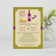 chá de panela moderno e atraente. Ideal para um casal sofisticado e divertido que adora vinho e comida gourmet. Excelente de reunir amigos e receber um evento de provando de vinho. Apresenta uma garrafa de vinho, copos de vinho e uma placa de queijo em uma paleta de cor verde, roxa e terra. O rótulo do vinho tem dois corações como símbolo do amor compartilhado pela noiva e pelo noivo. Adicione seu próprio texto. Padrão de Bolinhas no verso.