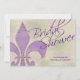 Celebrar a noiva de Nova Orleans para estar com esses convites de chá de panela com uma Fleur de lis roxa, estudada com falso miçanga de ouro sobre um fundo de cor d'água de cores roxas, verdes e douradas da Mardi Gras. A frente lê CHÁ DE PANELA em um script roxo rico. Adicione a noiva ao nome da frente e as informações do chá à parte de trás.