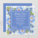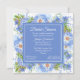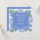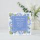 chá de panela azul de flor de milho bonito projetado como convite quadrado com flores de milho azul em volta da área de texto azul. O texto personalizado está pronto para personalizar, para atender às suas necessidades de eventos. O convite adorável que a noiva vai acalmar.