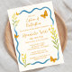 Celebre seu próximo capítulo com este chá de panela de borboletas, com delicadas borboletas laranja, flores silvestres amarelo-macio e uma borda ondulada azul-esbranquiçada. Inspirada por uma transformação alegre, esta design é perfeita para festas de primavera ou jardins de verão, brunchas ao ar livre ou chás temáticos. A escrita elegante acrescenta um toque pessoal, romântico, enquanto a paleta fresca traz à vida a poesia da natureza. Totalmente personalizável para a futura noiva, é uma maneira chique e estimulante de dar o tom para um dia cheio de beleza, amor e borboletas.