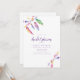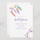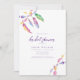 Prepare-se para um chá de panela memorável com este belo convite. Ele é projetado no estilo 'boho' e apresenta penas pastel arco-íris em um fundo de cor azul-d'água sonhadora. A combinação de elementos de boho e cores suaves cria uma estética encantadora que vai cativar seus convidados.