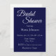 Estilo simples, chá de panela que apresenta um fundo de cor azul real e tenente junto com o nome da futura noiva e o horário e local do evento de festa, contato, etc., impresso em letras brancas e estilizadas. Personalize o seu convite substituindo o texto pelas suas próprias informações de chá de panela. Selecione o estilo e a quantidade do seu papel de convite.