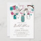 Convide convidados para o seu evento com este chá de panela personalizável. Apresenta frascos de matiz vermelho e lacrimogêneo, corações e flores. Personalize este chá de panela de jarro mason adicionando seus detalhes. Este chá de panela personalizado é perfeito para chás de primavera e outono. Está disponível em outras cores e estoque de papelão.
