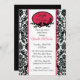 Comece seu evento bem com nosso Chá de panela apresentando uma bela estrutura oval com pássaros em galhos com Damasco branco e preto com vermelhos. Combinação de cores preto e branco de tendência. Apenas personalize nosso convite com suas informações de casamento e você está pronto para ir