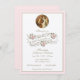 Belos Convites de chá de panela religiosos com uma imagem vintage da Virgem Bêntea Maria e Ruas. Joseph trocando votos no dia do seu casamento. Este cartão é acentuado com rosas cor-de-rosa. Todo texto e fontes podem ser modificados.