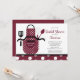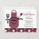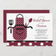 Parta seu evento fora do direito com nosso beijo retro do divertimento o chá de panela da cozinha do cozinheiro que caracteriza um avental & whisk, espátula & colher em Borgonha & em branco. Apenas personalize nosso convite com sua informação do chá e você é todo ajusta-se para ir.