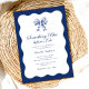 Defina o tom para um na moda e chá de panela de tendência com este Chá de panela Retromoderno, com uma estrutura ondulada e um arco inspirado na safra, adornado com tecido floral. A combinação de curvas elegantes e um marinho chic e uma paleta de cor azul real cria uma combinação perfeita de encanto retrô e sofisticação moderna. Se precisar de ajuda para personalizar o seu convite, por favor, avise-me. Eu adoraria ajudá-lo!