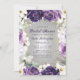 Chá de panela elegante e romântico com flores brancas e roxas pintadas à mão bonito e folhas verdes sábias acentuadas com brilho dourado. Contacte-me para obter assistência com as suas personalizações ou para solicitar produtos Zazzle adicionais correspondentes para os seus eventos de casamento ou de casamento.