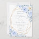Chá de panela ArtsApp — rosas impermeáveis azuis, folhagem de eucalipto azul empoeirada e margaridas brancas borrifadas com pó de ouro. Acentuado com um quadro de facetas gem douradas esfarrapado amovível. Todos os elementos são editáveis. Copyright © 2023 ArtsApp™. Todos os direitos reservados.