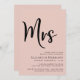 Mínimo chá de panela cor-de-rosa pincelado moderno com "Sra." escrito em um grande roteiro elegante.