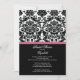 Comece o seu evento com o nosso Chá de panela moderno e elegante de damask colocado sobre um fundo preto com uma banda rosa de Honeysuckle. Apenas personalize nosso convite com suas informações de casamento e você está pronto para ir. Disponível em outras combinações de cores em nosso compro em www.celebrateitweddings.com. Veja nossas notas de agradecimento, adesivos e botões de noiva em nosso compro