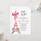 A aquarela bonita do chá de panela de Paris apresenta uma Torre Eiffel com aquarela, um cachorro francês giro, macarões e uma caixa de compro com balões. Personalize com suas informações de evento.
