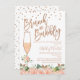 Este chá de panela de brunch e borboleta apresenta dois arranjos florais de aquarela em tons de pêssego e um copo de champanhe alto e elegante em uma textura de ouro falso rosa e cor d'água cor de pêssego. O título encontra-se também em ouro rosa falso e faz parte da imagem. Este simples, mas elegante chá de panela e espumante está pronto para ser personalizado.