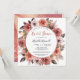 Chá de panela refinado ideal para um evento rosa dourado e blush. Anel de ouro falso cintilante no centro, rodeado por flores impermeáveis de cor d'água, em cor esbranquiçada, pêssego rosado e rosa poeirento. Frase rosa de Chá de panela dourado. Uso de Script e bloqueio da tipografia moderna. Traseira da placa com formas geométricas em vários tons de ouro rosa. Você pode fazer alterações no tamanho, estilo e posição da fonte selecionando personalizar. Coordenar cartões de recepção, cartão de bingo, cartão de conselho e etiquetas de favorecimento disponíveis.