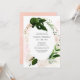Convidado para chá de panela de cor d'água verde com quadro geométrico rosa dourado. Os florais cor-de-rosa pincelados e a lavagem com aquarela complementam o design.