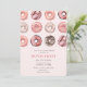 Convide seus convidados para um chá de panela doce e chique com nosso convite "Rosquinhas e Diamantes Rosa". Este design maravilhoso combina a diversão das deliciosas rosquinhas cor-de-rosa com a elegância dos brilhantes diamantes, fazer a escolha perfeita para uma memorável celebração pré-casamento.