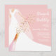 Os convites de chá de panela de Brunch e Borboleta apresentam uma noiva no seu vestido e véu sobre um fundo cor-de-rosa com garrafa de vinho espumante, flauta de vidro e sequências de faux com seus detalhes em letras brancas quicas. **TIP: O tamanho quadrado EXIGE POSTAGEM EXTRA ou e-mail em um envelope de 5" x 7". MAIS cores e itens CORRESPONDENTES em nossa coleção.