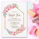 Celebre o entusiasmo do seu noivado recente e convide seus amigos e entes queridos para um chá alto com este elegante chá de panela floral cor-de-rosa com estrutura geométrica de ouro.