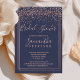 Rosa dourado confetti marinho chá de panela de tipografia azul com fama rosa dourada e azul-da-noite com borda dupla geométrica.