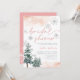 Chá de panela de inverno, . Rosa e esbranquiçada com pinheiros e flocos de neve.