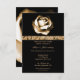 Convide os convidados para o seu próximo chá de casamento com este design de convite atraente que apresenta um rosa de ouro e uma faixa floral contra um fundo preto. O texto personalizável permite alterar fontes, alterar cores e tamanhos de texto conforme desejar. Matando papelaria de casamento disponível com esta design também.