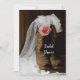 Convide os convidados para a festa pré-casamento de um rancho casual, mas clássico, honrando a noiva para estar com o Rosa Pink Country e o Chá de panela Cowboy Boots. Este país, informal e elegante, Chá de casamento ocidental Invite apresenta uma fotografia floral acesa de botas de cowboy castanhas, cheias de uma flor rosa, com um véu nojento e madeira de celeiro, em cetim branco.