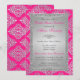 Convites Chá de panela Rosa, Silver Glitter Damask Convidad