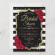 Chá de panela vermelho preto Elegante design com brilho falso. Listras pretas e brancas com rosas vermelhas. Perfeito para um Chá de panela na moda.