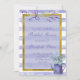 O design adorável e editável do casamento com o flowerboquet maravilhoso feito da lavanda e de um vaso com flores e lavanda do campo floresce em uma no fundo listrado roxo e branco com quadro da folha de metal do ouro.
