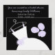 chá de panela bonito com um vestido estilizado de casamento e flores em roxo e branco sobre fundo preto. Um design personalizável para você personalizar com seu próprio texto, imagens e ideias.