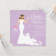 O convite triguenho moderno à moda do chá de casamento da noiva caracteriza uma noiva moderna chique que brinda com um vidro de vinho ao guardarar um buquê bonito das flores para casamentos cor-de-rosa ajustadas no impressas na lavanda que popular de papel o fundo de linho roxo com está para fora o texto branco. Nosso chá de panela moderno da noiva é perfeito para uma celebração popular do chá de panela do vinho. Visite nossa loja para ver este chá de panela bonito em uma grande seleção de cores do buquê floral e de variações diferentes da noiva.