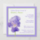 Um lápis de cor original ilustrado pela linda flor roxa de Íris. Perfeito para um casamento com um tema floral em cores roxas e verdes coordenadas.