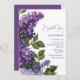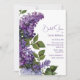 chá de panela bonito feito em branco, com lilases roxos decorando o lado esquerdo do convite. Personalize o texto roxo personalizado para atender às suas necessidades de evento.
