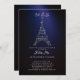Um chá de panela elegante, na moda e minimalista com um tema Paris, com uma torre Eiffel coberta de rochas (este é um efeito digital), uma simples tipografia e delicado, um fundo roxo escuro com uma luz suave, mas dramática, sobre a torre Eiffel, bem como o título "A futura Sra.".