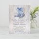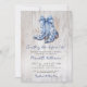 Algo Azul Antes De Eu Fazer! Chá de panela Elegante de Boot Cowboy. Celebrar a noiva-a-ser com um toque de charme e sofisticação do país. Este convite apresenta um par de botas de cowboy azuis rico no topo, adornada com um arco de aquarela grande. As botas são decoradas com um padrão floral ou inspirado na chinoiserie, acrescentando uma reviravolta elegante ao tema rústico. A frase "Algo azul antes de eu fazer!" é escrita em uma na moda mix de fontes de cinzas azul e azul marinho, combinando guião manuscrito e tipografia serifônica clássica para um sentimento polido e moderno. Perfeito para chás de panela com tema de país ou vaqueiro, este design é versátil o suficiente para qualquer cenário, desde comemorações de celeiro rústico a encontros acolhedores. A frente da placa tem um fundo branco lavado de madeira rústica para mais charme, enquanto a parte traseira apresenta uma cor azul sólida de marinho que pode ser personalizada para corresponder ao esquema de cores do seu evento. Totalmente personalizável, você pode ajustar o texto, as fontes e as cores para refletir o estilo exclusivo da noiva. Disponível como um cartão impresso ou um arquivo digital baixável, este encantador convite é uma maneira deliciosa de dar o tom para sua celebração especial.