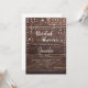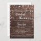 Chá de panela rústico clássico com fundo de madeira e efeitos luminosos. A fonte é branca e a maioria do texto é personalizável, por exemplo, nome, data, endereço, etc.