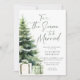 Neste Natal, o chá de panela de inverno personifica elegância quic com a design de aquarela encantadora, apresentando um pinheiro majestoso com sotaques brancos de neve, pintados em aquarela moderna, com um casal de presentes embaixo para sugerir o Natal, assim como uma caligrafia moderna para o título "Esta é a Estação a Ser Casada". Perfeito para casais que amam arte e designs únicos, temas elegantes, rústicos, boêmicos e românticos do país, este convite é a escolha ideal para convites de chá de panela de Natal.