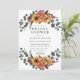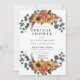 Rústico Borgonha Eucalyptus Girassóis Convites de chá de panela com girassol de aquarelas folhas de eucalipto e girassóis Buquê de trás
