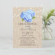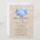 Hydrangea Azul Mason Jar Rustic Burlap Convites de chá de panela.