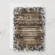 Este chá de panela de inverno rústico invoca a imagem de uma janela de fosco em um dia frio de inverno de neve. O plano de fundo apresenta uma madeira de celeiro em apuros, enquanto ícones cristalizados e flocos de neve delimitam o cartão. Perfeito para um tema de casamento no inverno encantador.
