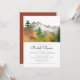 Chá de panela Rustic Fall Frost Mountain Boho - apresenta uma linda, aquarela, cena florestal com altura, pinheiros, montanhas altas e folhagem de outono, escrita à mão e tipografia moderna. Mostrada com terracota/ferrugem na parte traseira do convite, entretanto, a cor pode ser facilmente alterada para se coordenar com suas cores na ferramenta design. O chá de panela faz parte de uma coleção.