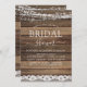 A Rustic Farmhouse String Luzes Lace Wedding Convites de chá de panela em fundo de madeira - inclui uma bela e elegante tipografia com a moderna Country Fazenda House Sparkle para a celebração especial do dia do Casamento.