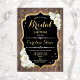 Chá de panela russo. Design com rosas brancas, dourado brilhante e padrão de madeira castanha escura. Possui fonte de script na moda e confetti. Perfeito para um chá de panela elegante. Personalize com seus próprios detalhes.