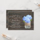 Convites de chá de panela de madeira Rustic Blue Hydrangea Mason Jar.
