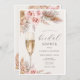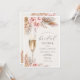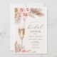 Este chá de panela russo do boho apresenta um fundo de marfim com erva-pampas neutra, florais secos, rosas cor-de-rosa pincelada e um brilhante vidro de champanhe.