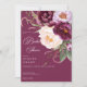 Celebre o amor no florescimento do cheio! Nossos convites encantadores apresentam um fundo vibrante de burgundy, a canvas perfeita para um buquê que respira. Imaginem uma cascata de peônias de aquarela em roedor rico, delicado, rosa-lilás pálido, e branco cremoso, aninhado entre a luxuosa folhagem verde. Este design cativante define o palco de uma celebração cheia de alegria e riso. Criado pela imprensa simplesmente de farmácia.