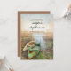 Chá de panela antigo e rústico para chá de panela da frente de água perto do lago ou rio. O convite tem casal de canoa perto do lago.