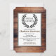 Palangres de madeira de celeiro escuro e rústico, design com silhueta de louros pretos e suas informações de convite personalizadas em texto castanho e preto. Este é um ajustado excelente para qualquer país, elegante e casamento rústico!