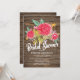 Lindas flores cor-de-água cor-de-rosa colocadas em um país com convites de chá de panela de fundo de madeira rústica, com uma bela letra de tipografia escrita escrita com letra de letra maiúscula. Belo acréscimo ao seu chá de casamento, chá de panela de jardim para primavera ou verão.